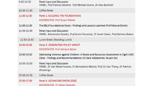 On 25 November 2019, the 2nd EBLS Symposium entitled Addressing Violence against Children in Eight Cities across the World: Lessons Learned from the EBLS Foundational Studybrought together academics and stakeholders from around the world to discuss core findings from the foundational stage of EBLS and to examine implications for the wider global agenda of addressing violence against children.