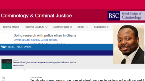 Dr Justice Tankebe published two papers focusing on his research on policing and legitimacy: In their own eyes: an empirical examination of police self-legitimacy in the International Journal of Comparative and Applied Criminal Justice and Doing research with police elites in Ghana in Criminology & Criminal Justice. The latter was co-authored by Emmanuel Addo Sowatey, University of Ghana. Below are the abstracts and links to each paper.