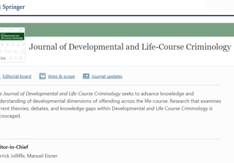 Prof Jolliffe and Prof Eisner are the new Editors-in-Chief of the Journal of Developmental and Life-Course Criminology